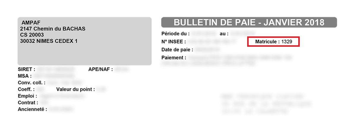* L'identifiant salarié est visible sur l'entête de vos bulletins de salaire.